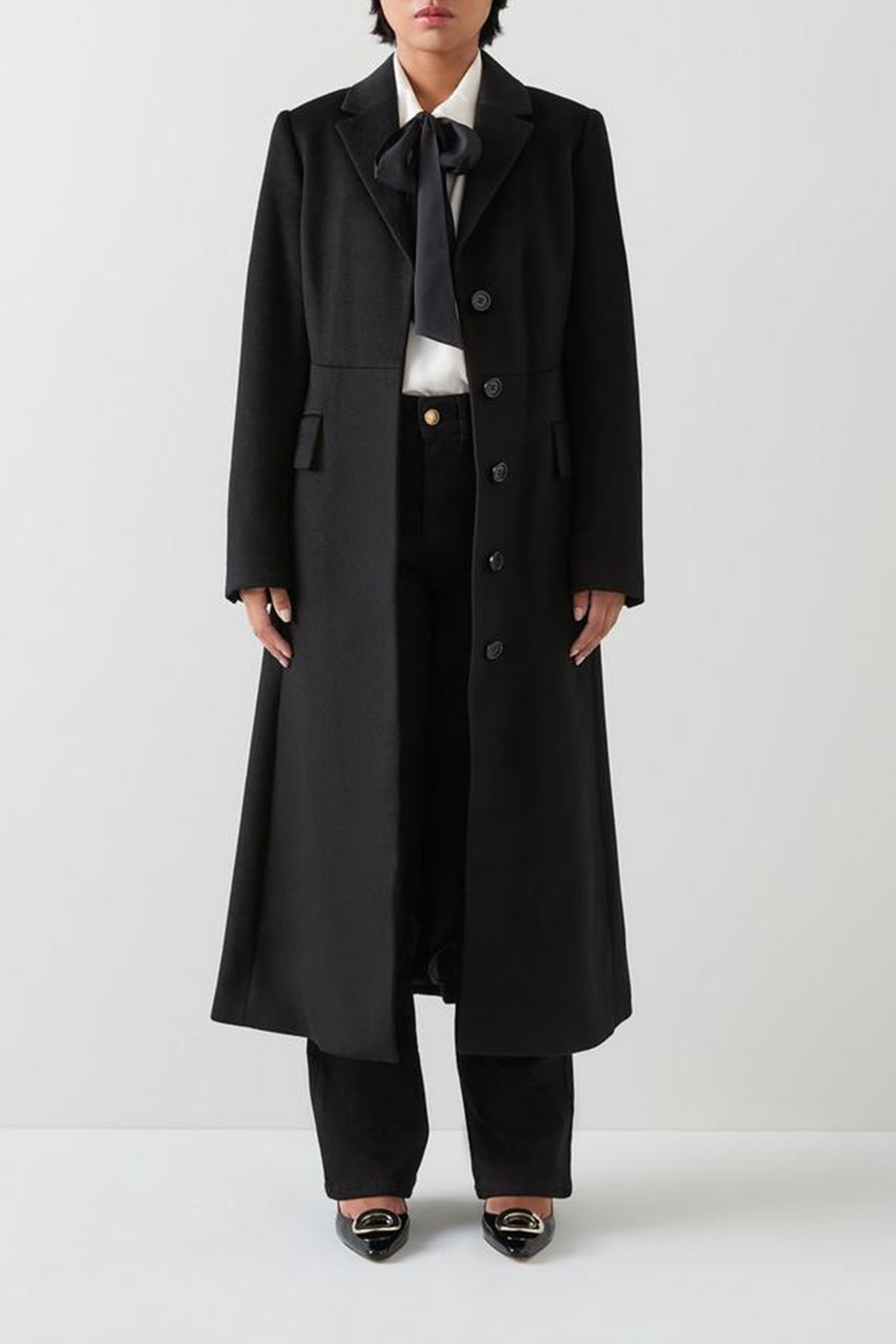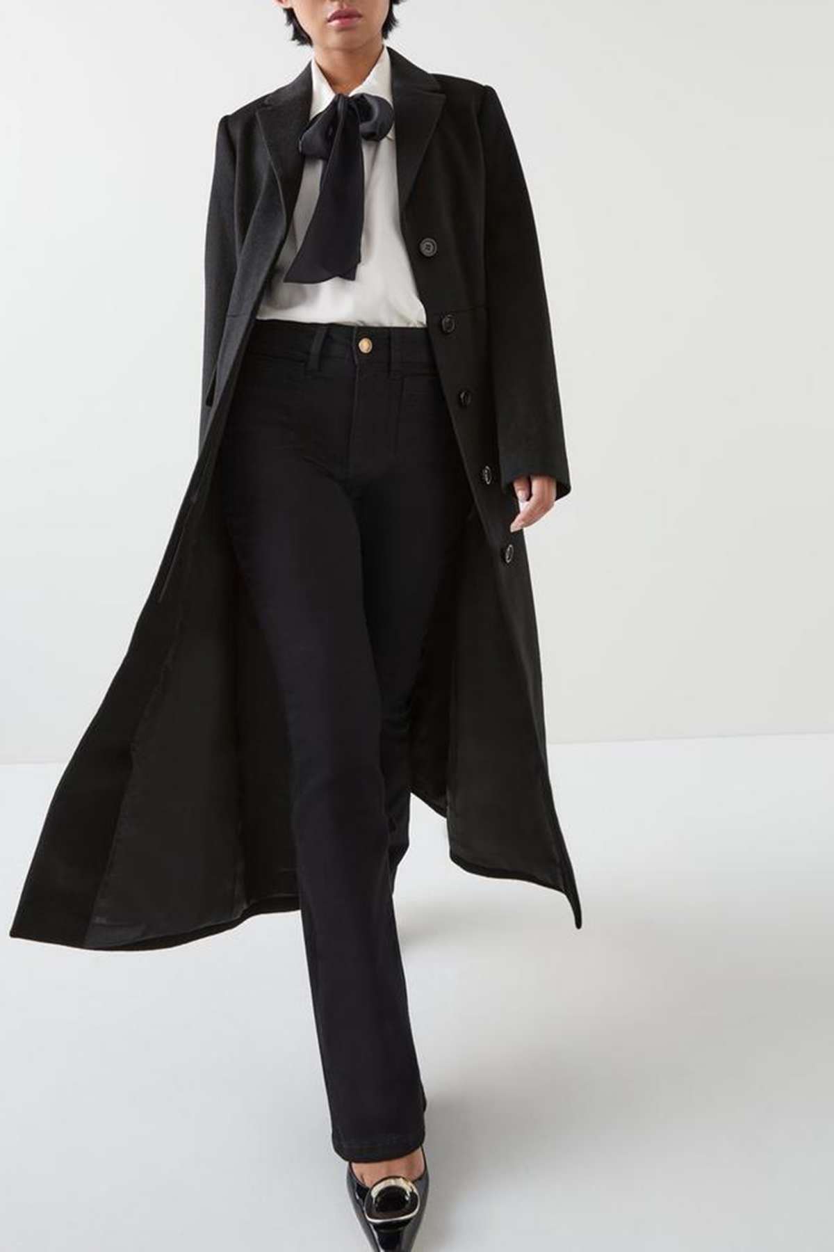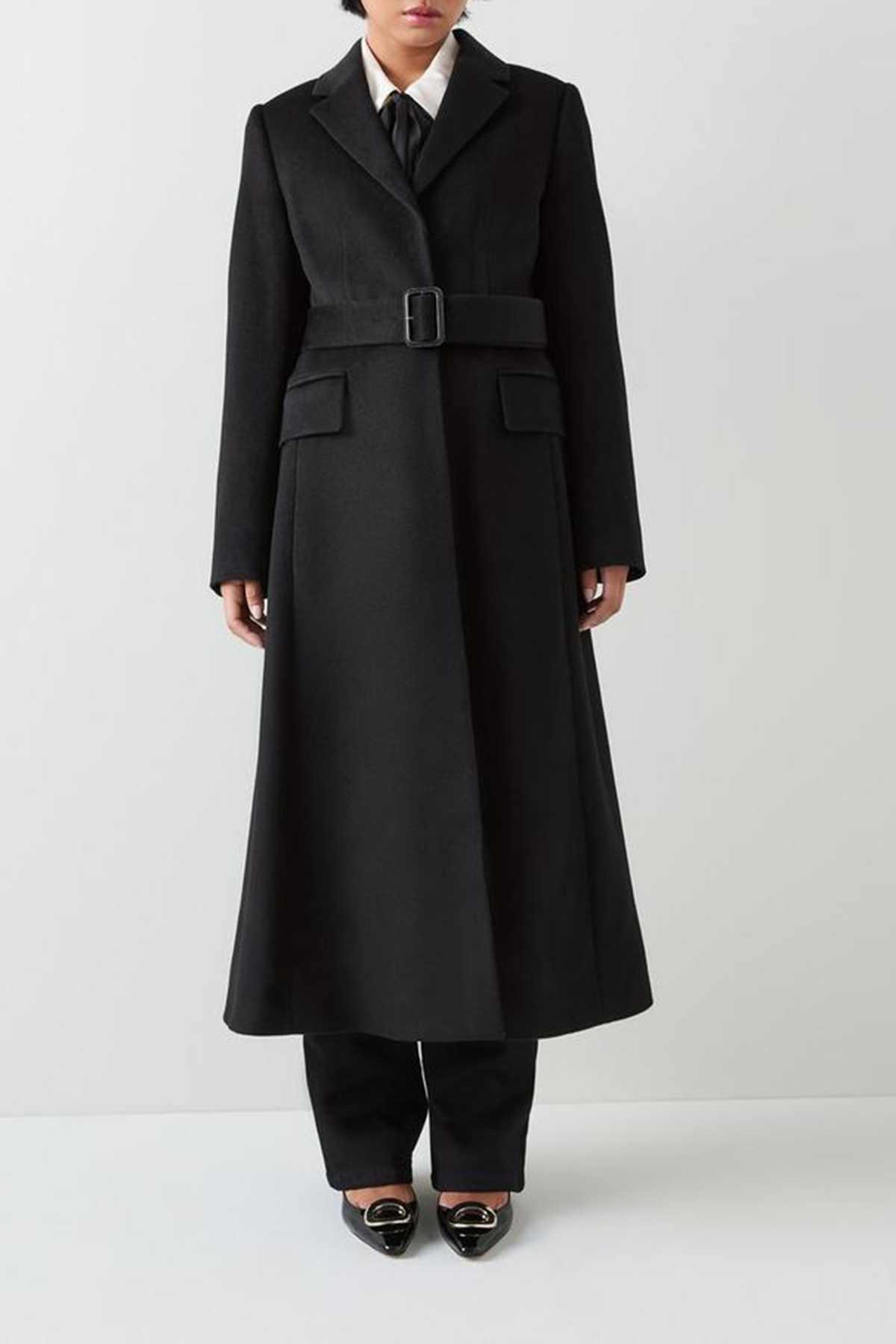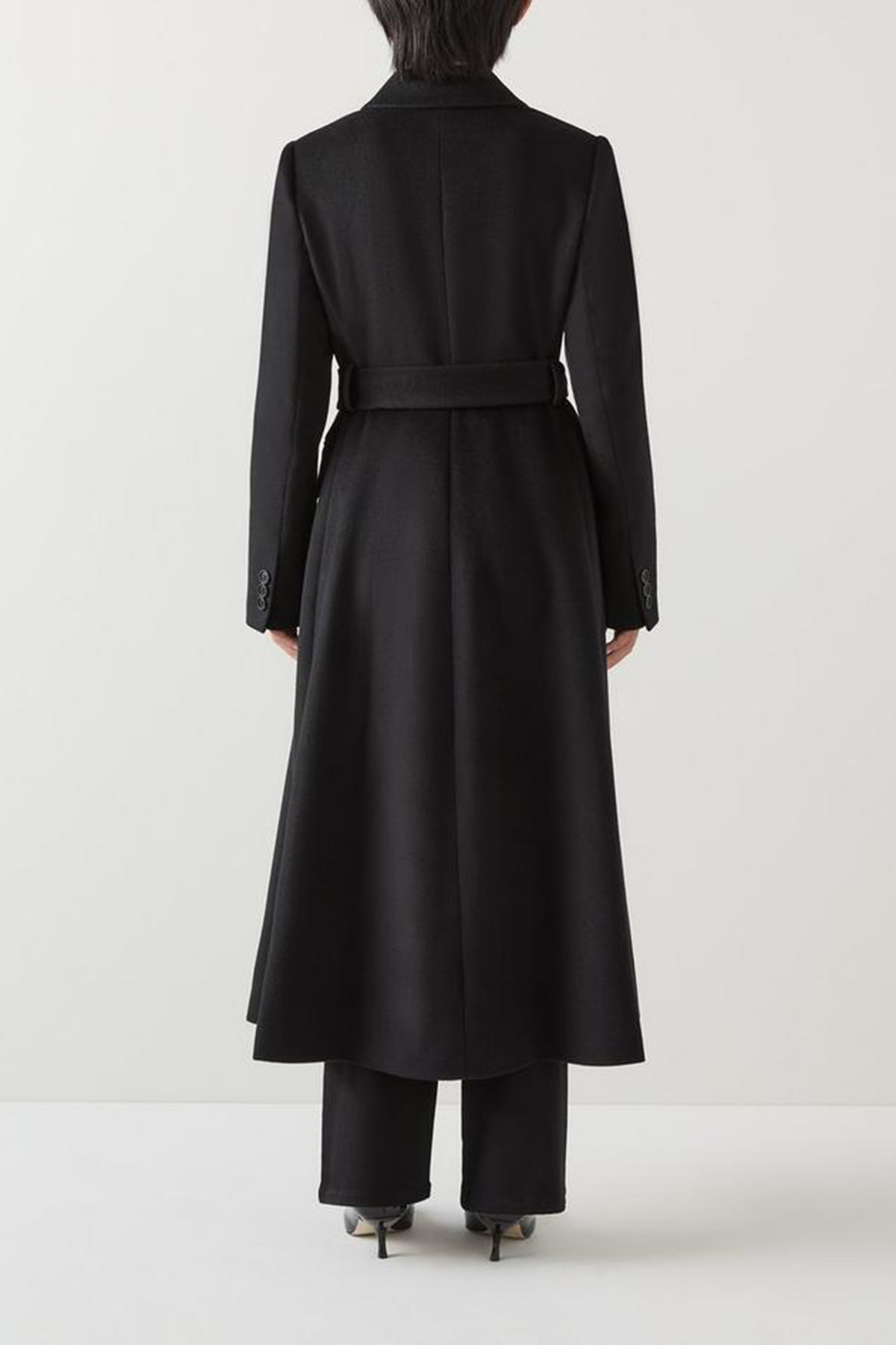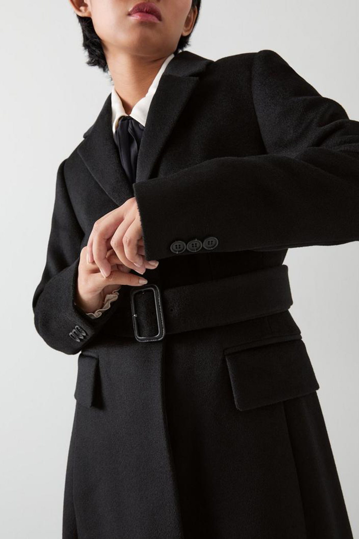 Effortlessly stylish, the petite wool coat is essential for the sophisticated wardrobe. In timeless black wool, it features a removable belt, elegant buttons, and a classic collar design that seamlessly blends into any workwear ensemble. Perfectly pairs with tailored trousers or a sleek pencil skirt for a polished look.
