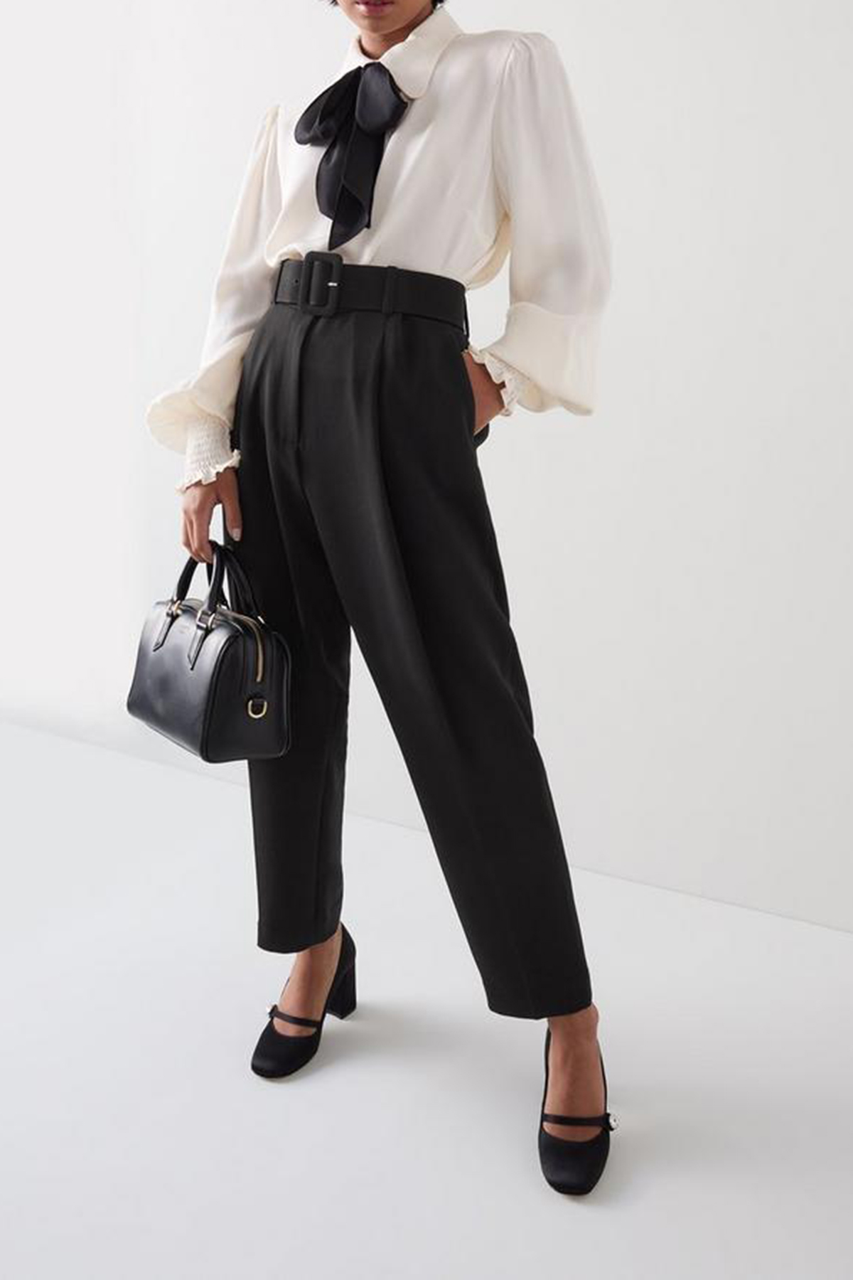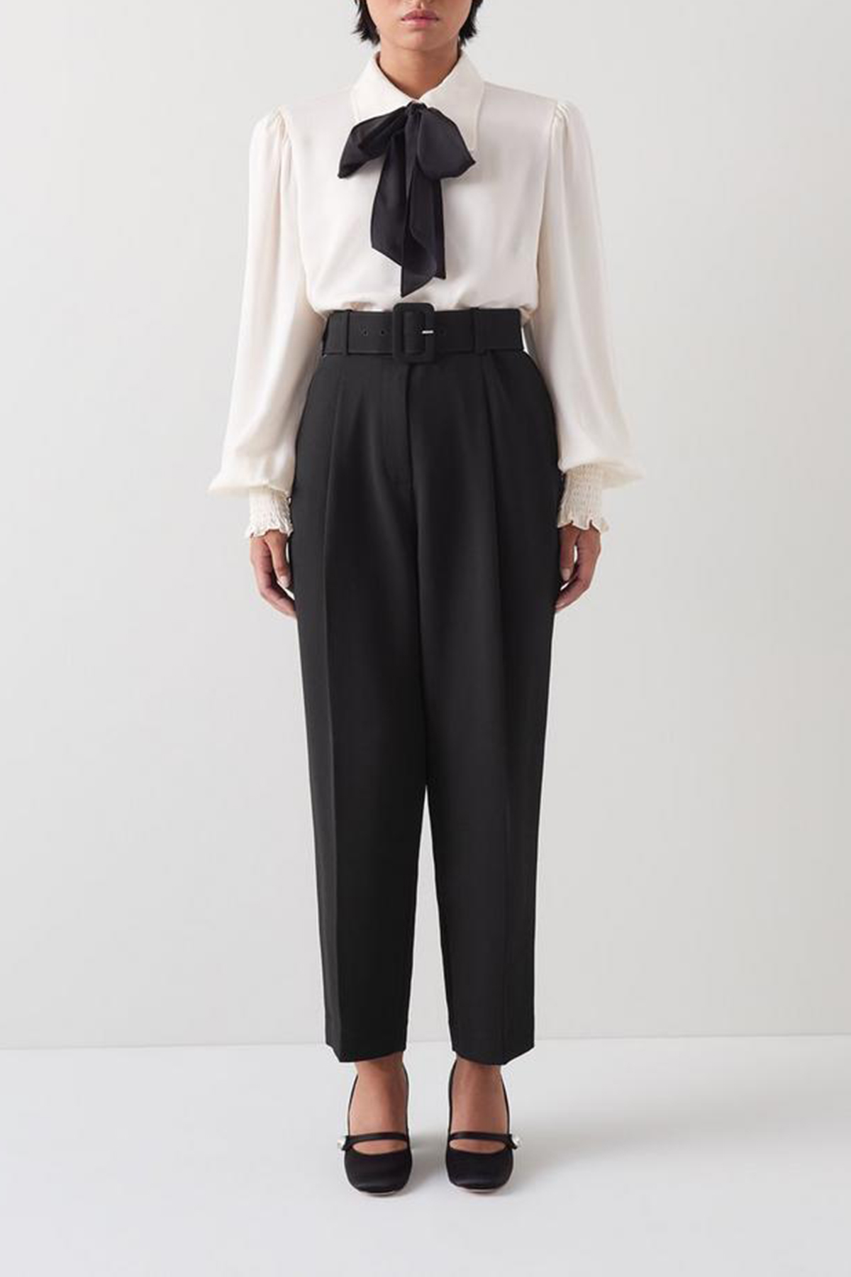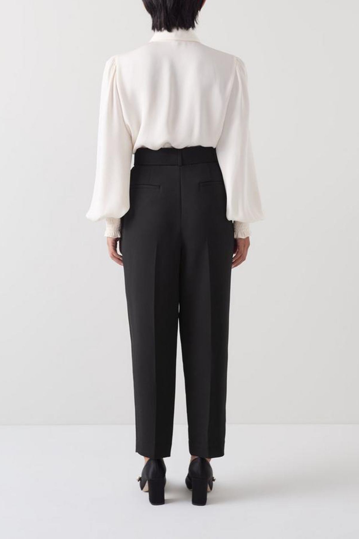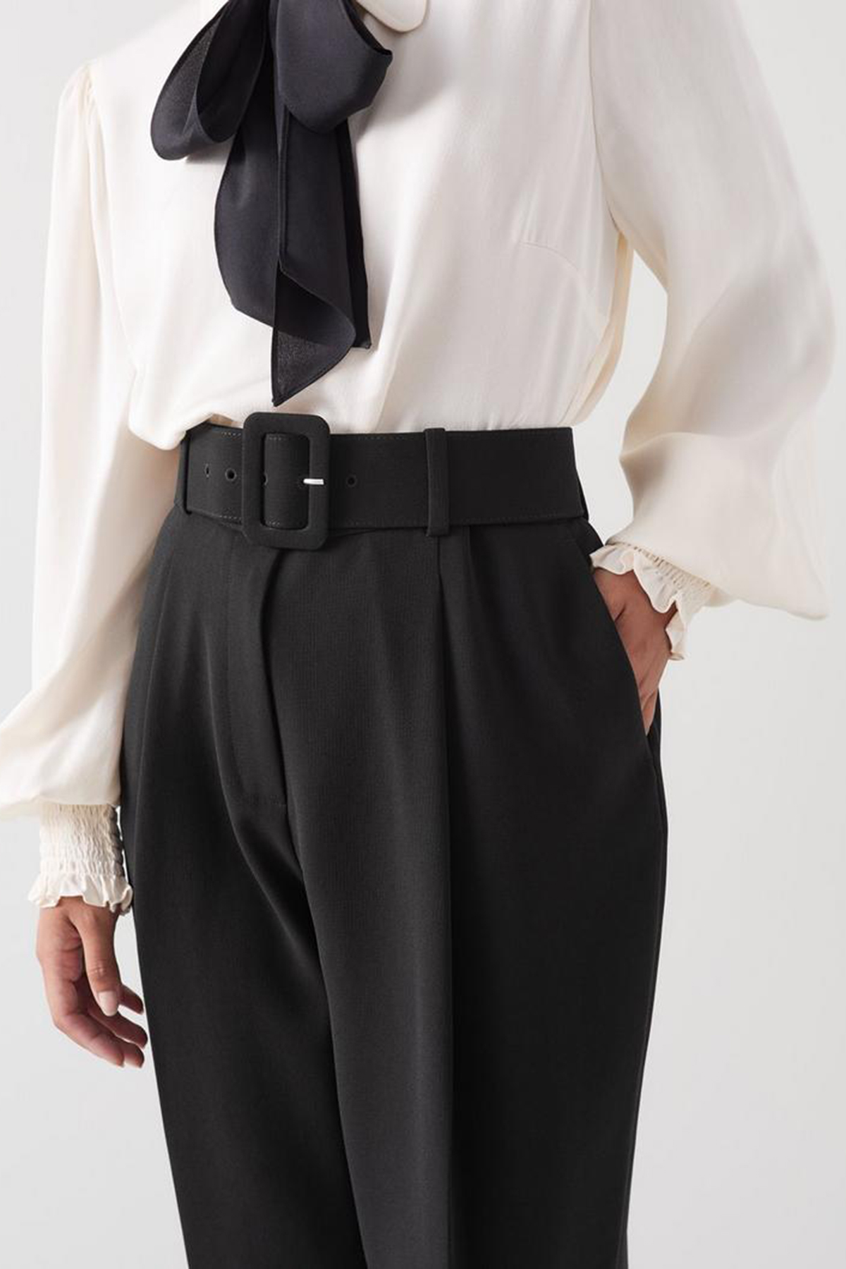 Enhance your workwear wardrobe with a touch of timeless elegance. The trousers in classic black are crafted from high-quality woven fabric, featuring a removable belt, front zip, and hook-and-eye fastening. Perfect for pairing with a crisp blouse or your favourite tailored blazer.