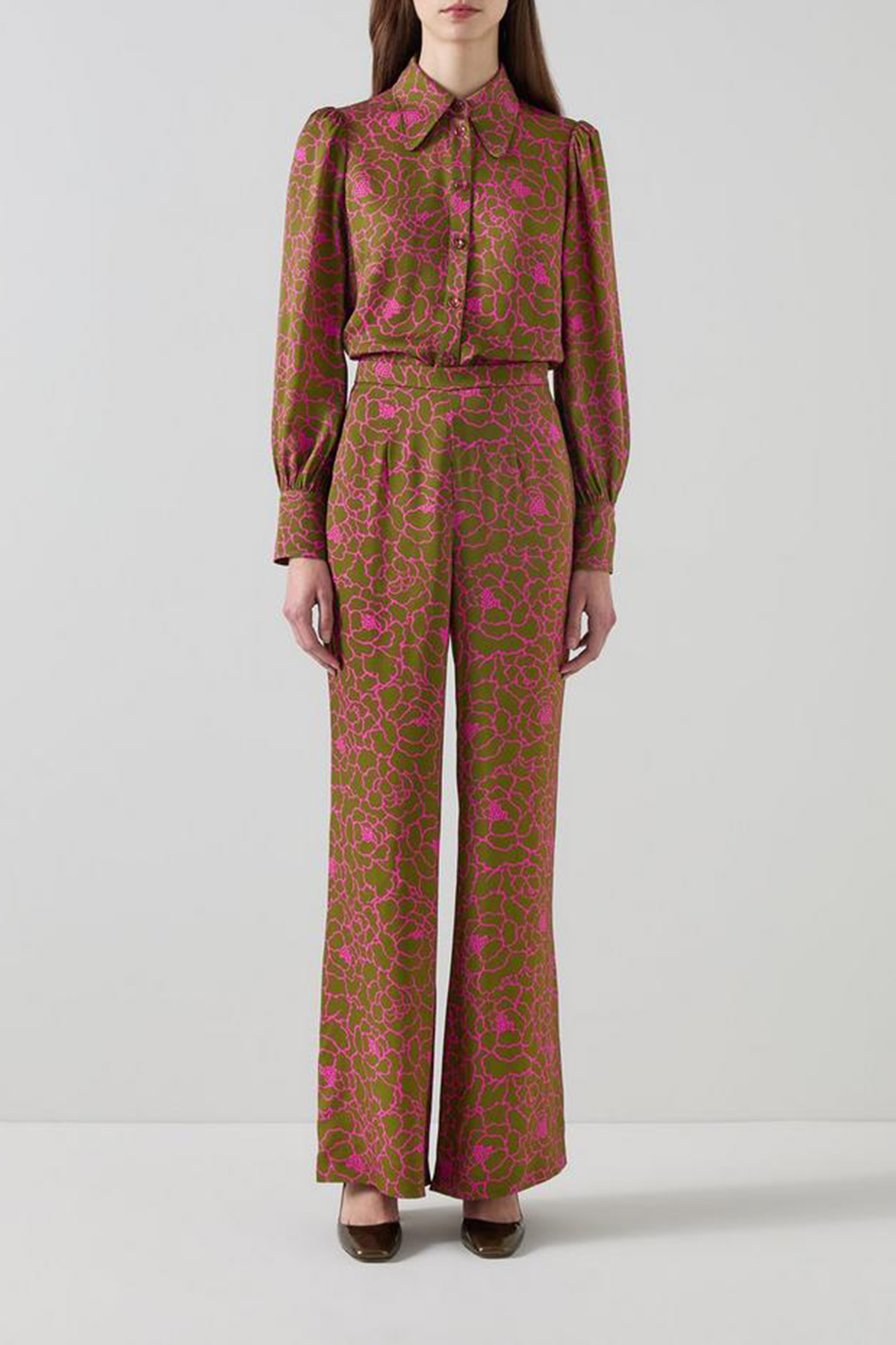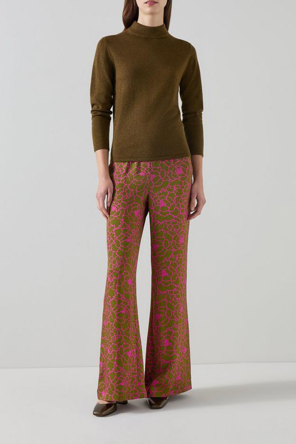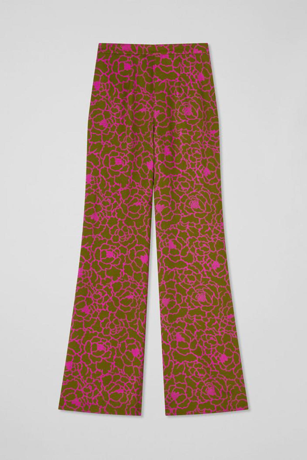 Imagine stepping into a garden of sophistication with every stride. The peony print trousers in olive and magenta, crafted from luxurious viscose, feature a stunning floral design perfect for smart-casual occasions. Pair them with a sleek blouse or a cosy knit to complete your refined look.