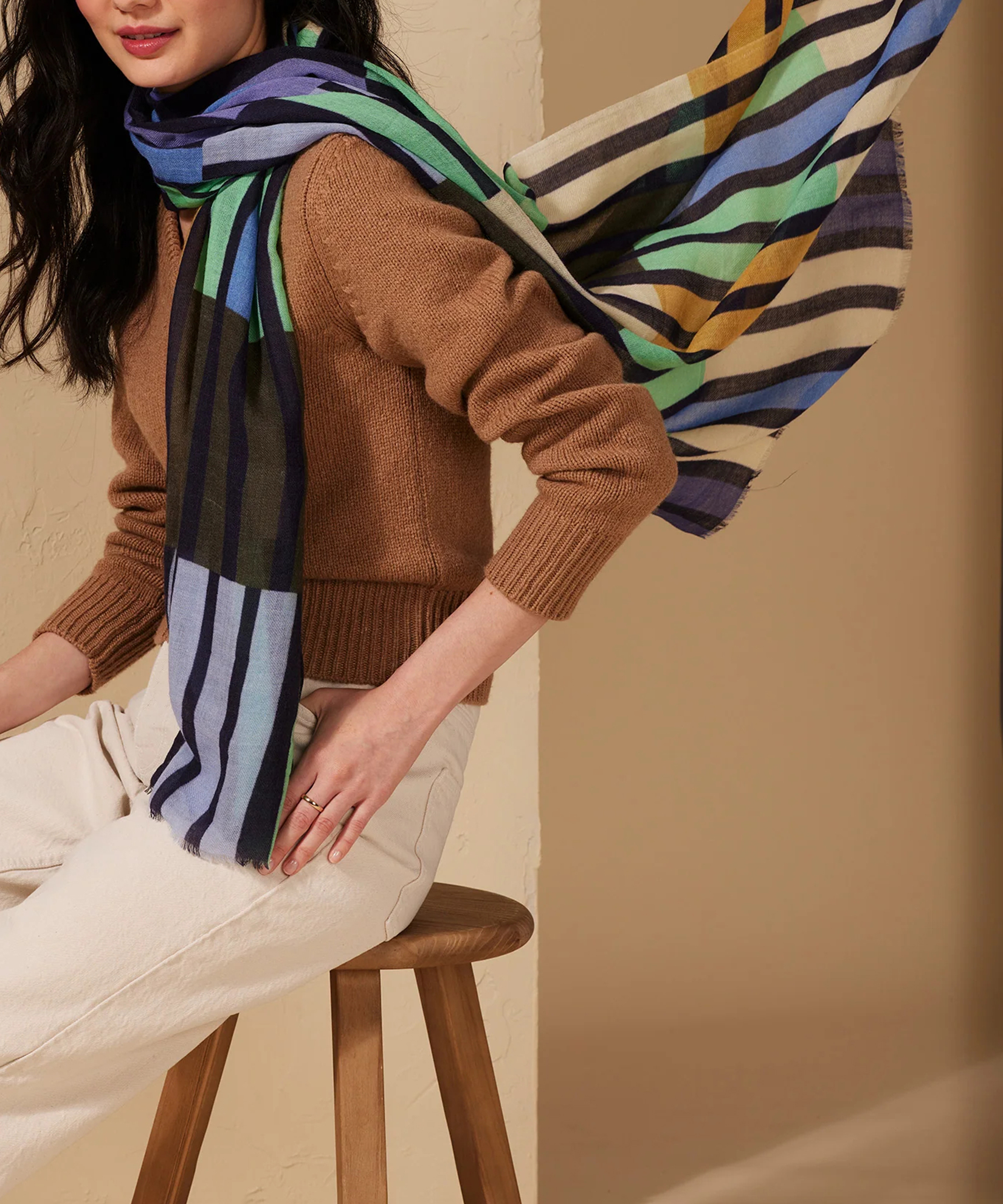With its striking stripe design, this long-length scarf exudes uplifting vibrant color.