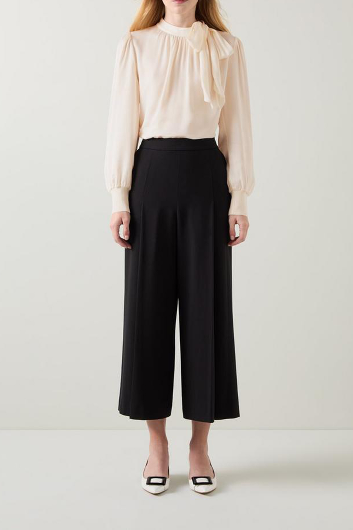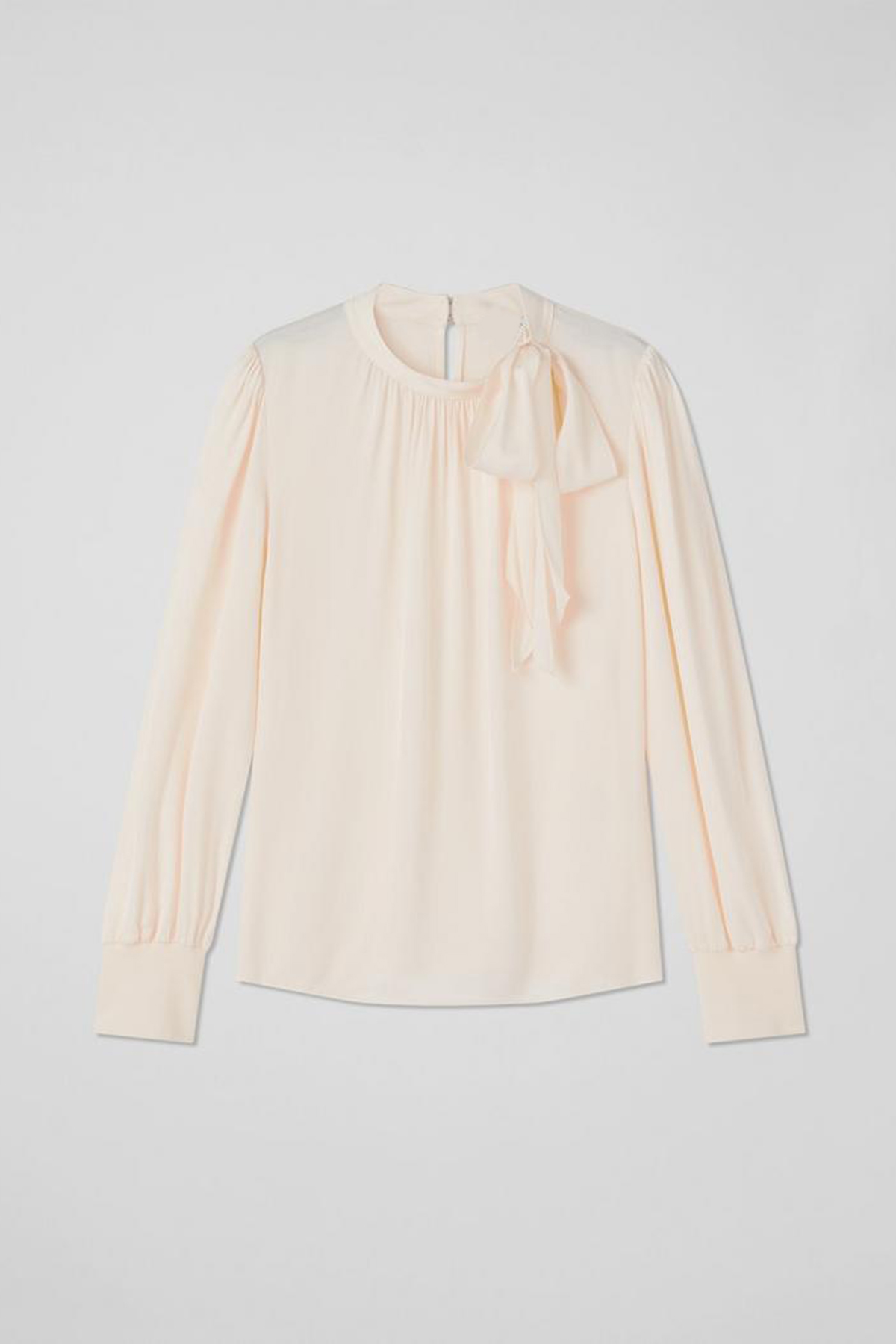Elevate your style with the timeless blouse in a sophisticated ecru hue. This woven top, crafted from luxurious viscose, features a stylish tie neck and full length sleeves, making it a perfect workwear staple. Pair it with tailored trousers or a sleek pencil skirt for a polished, professional look.