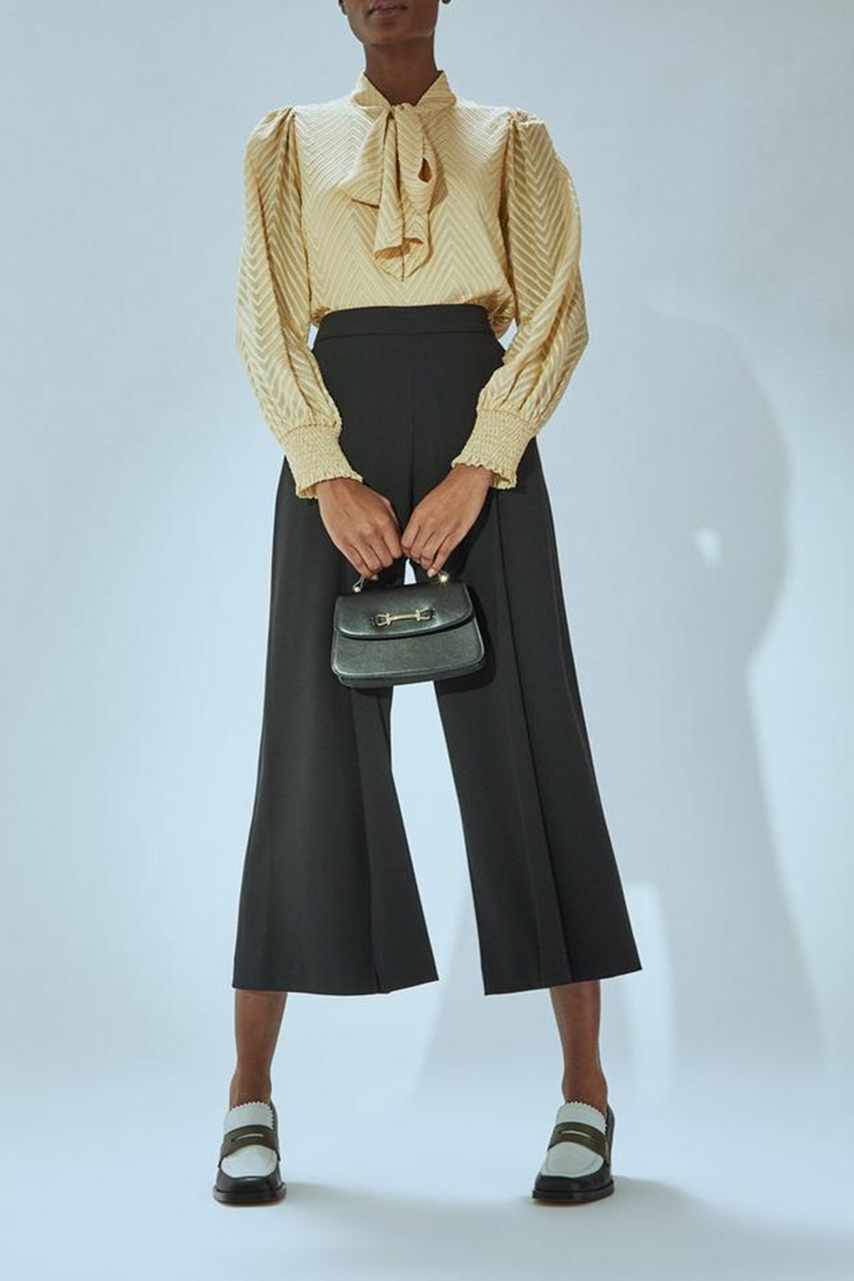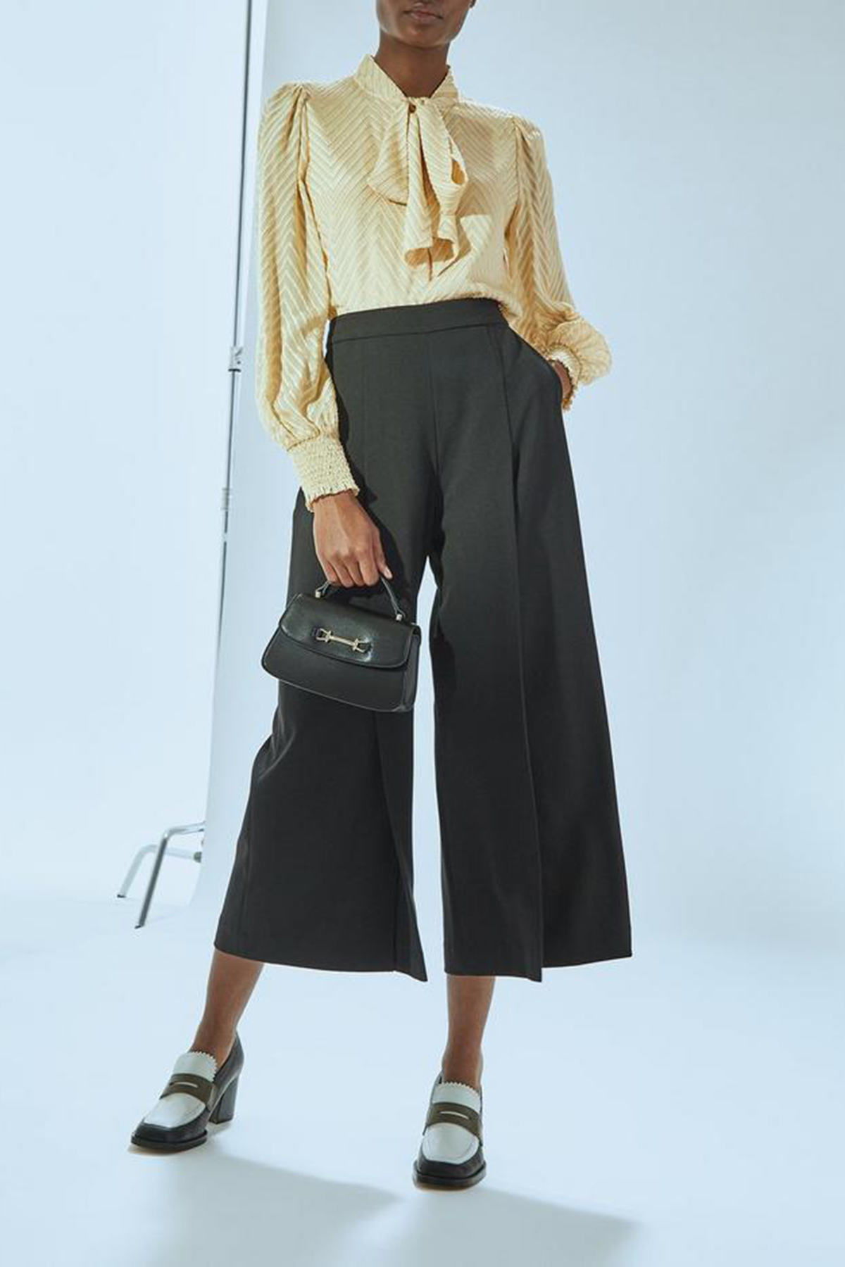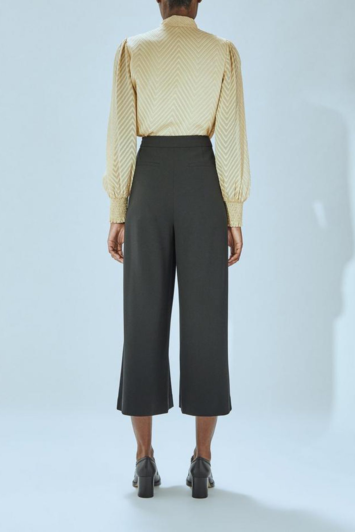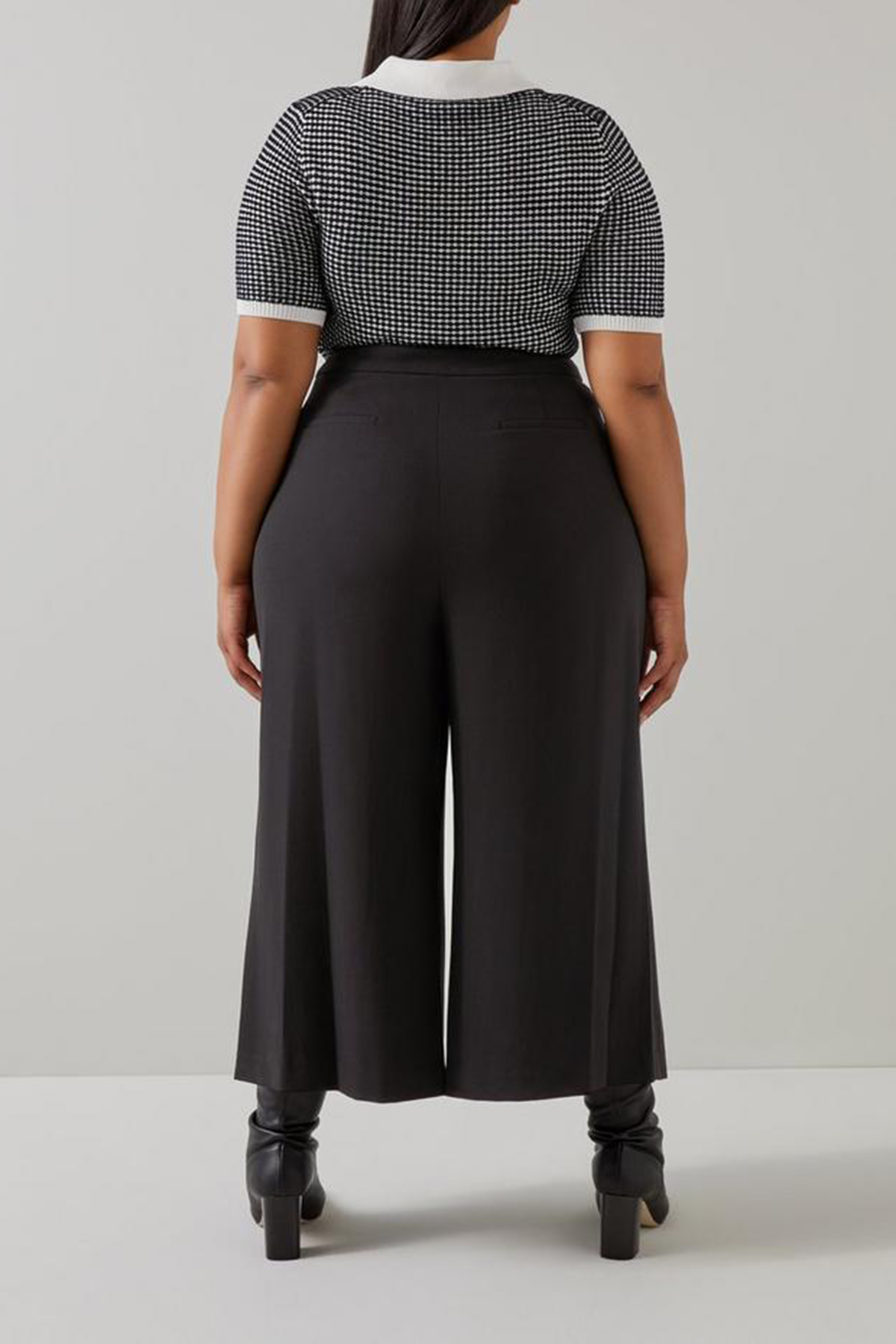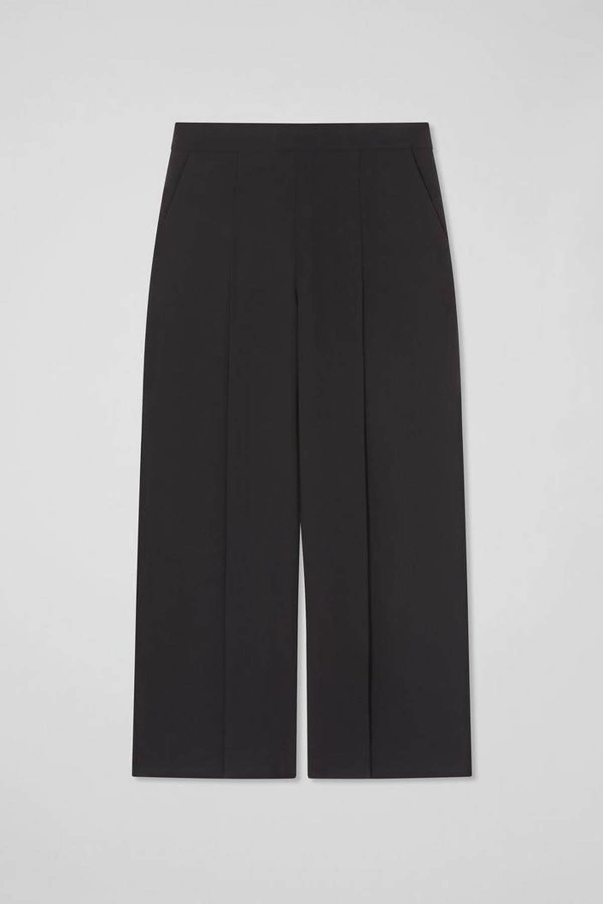 Effortlessly stylish, these black wide crop pleat trousers are a perfect addition to any modern wardrobe. The rousers, crafted from a high-quality fabric blend, showcase a sleek design perfect for workwear. Pair them with a crisp white blouse or a tailored blazer for a polished look.