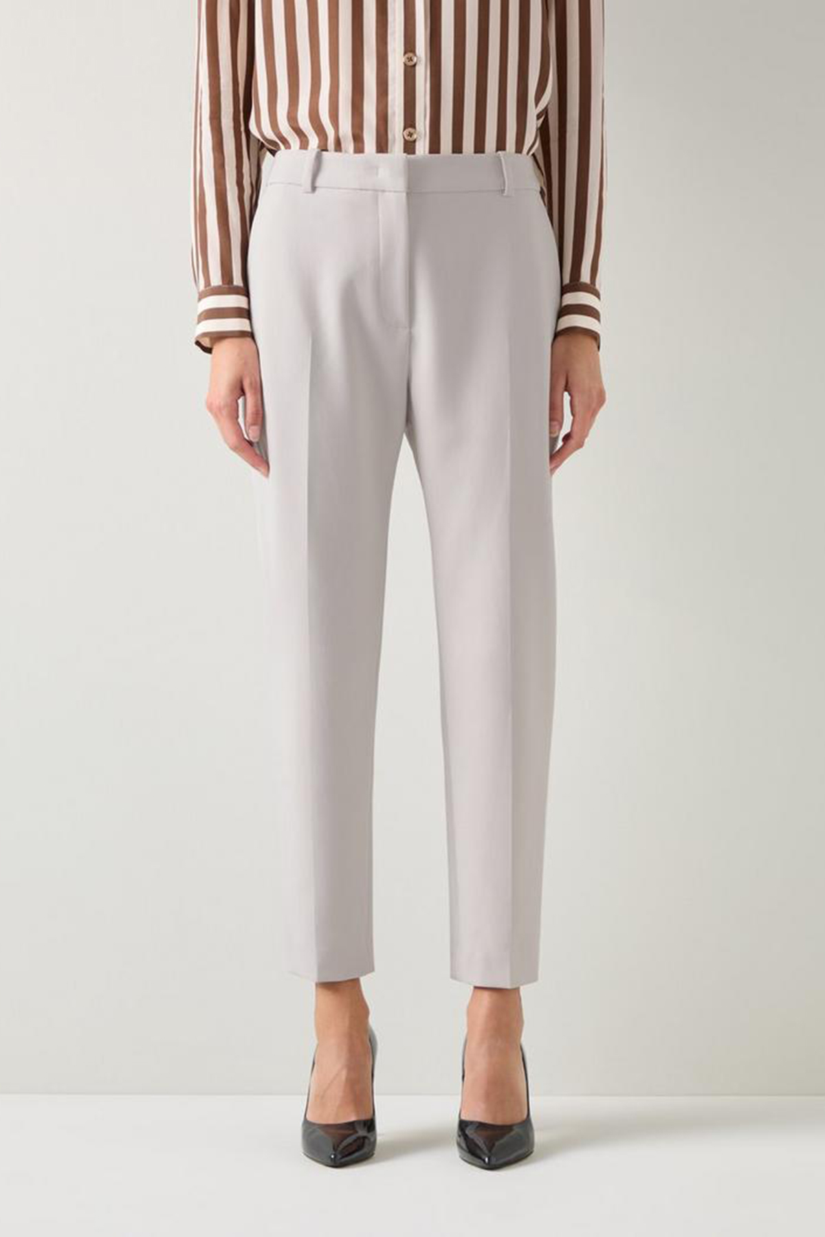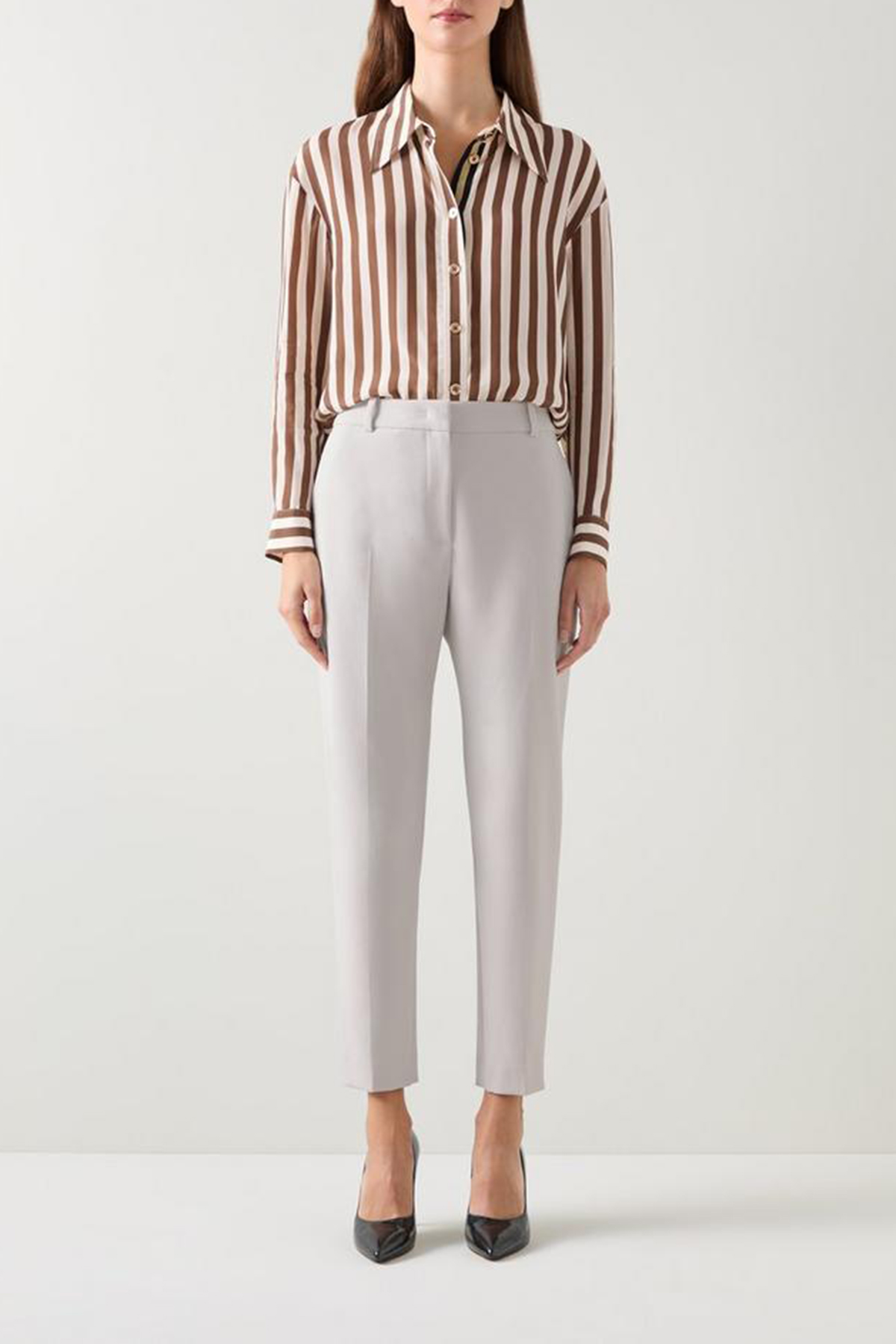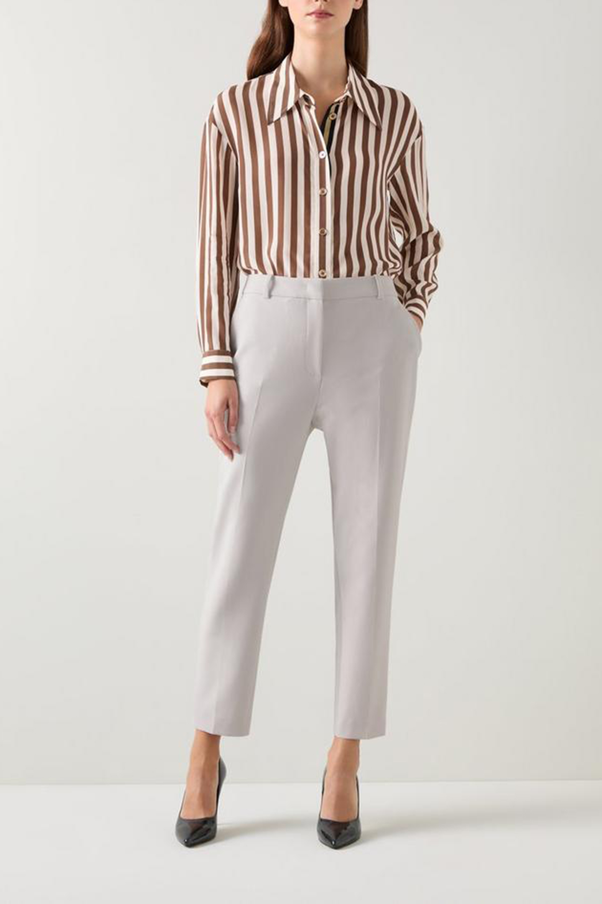 Imagine a stylish day at the office with our trousers setting the tone. In a refined putty hue, these cigarette leg trousers crafted from a high-quality blend offer an effortlessly sophisticated look. Perfectly pair them with a crisp white blouse or a bold blazer for a polished ensemble.