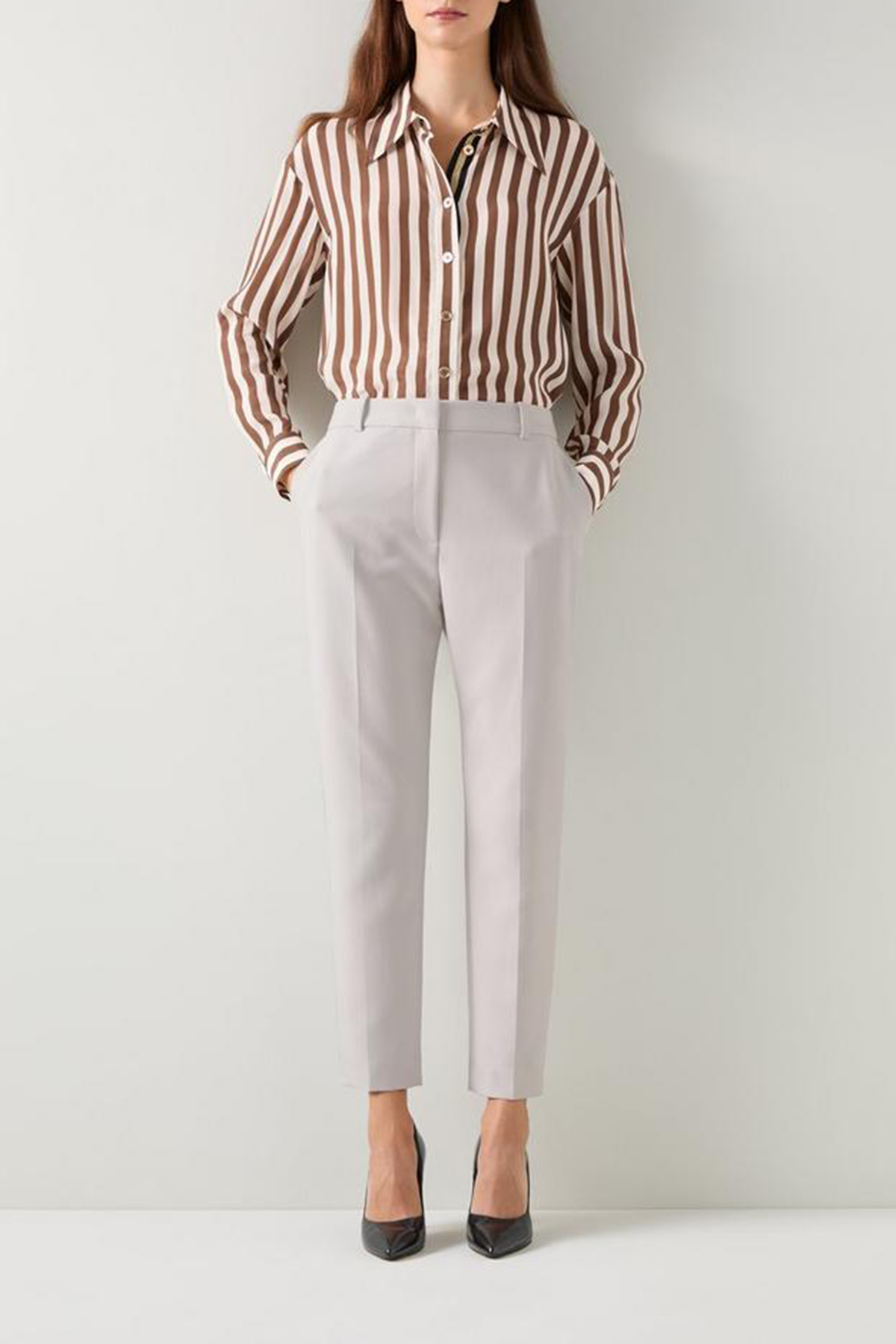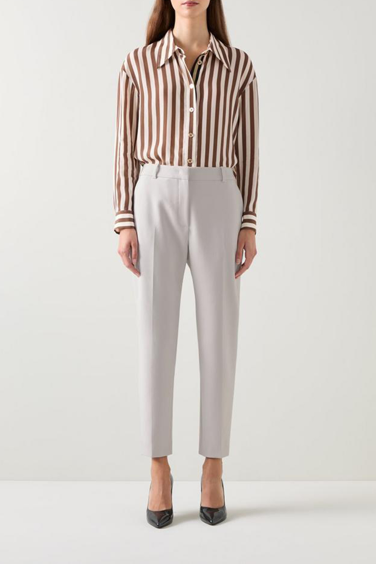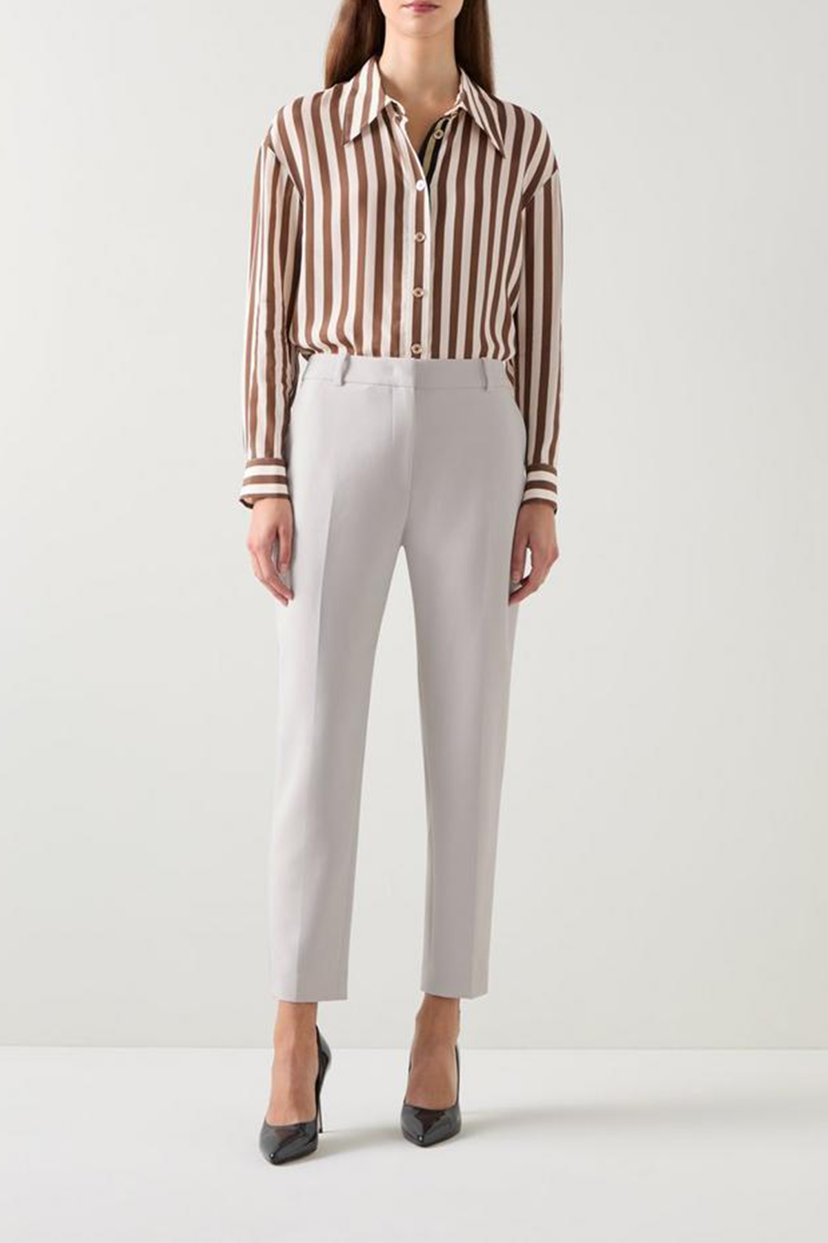 Imagine a stylish day at the office with our trousers setting the tone. In a refined putty hue, these cigarette leg trousers crafted from a high-quality blend offer an effortlessly sophisticated look. Perfectly pair them with a crisp white blouse or a bold blazer for a polished ensemble.
