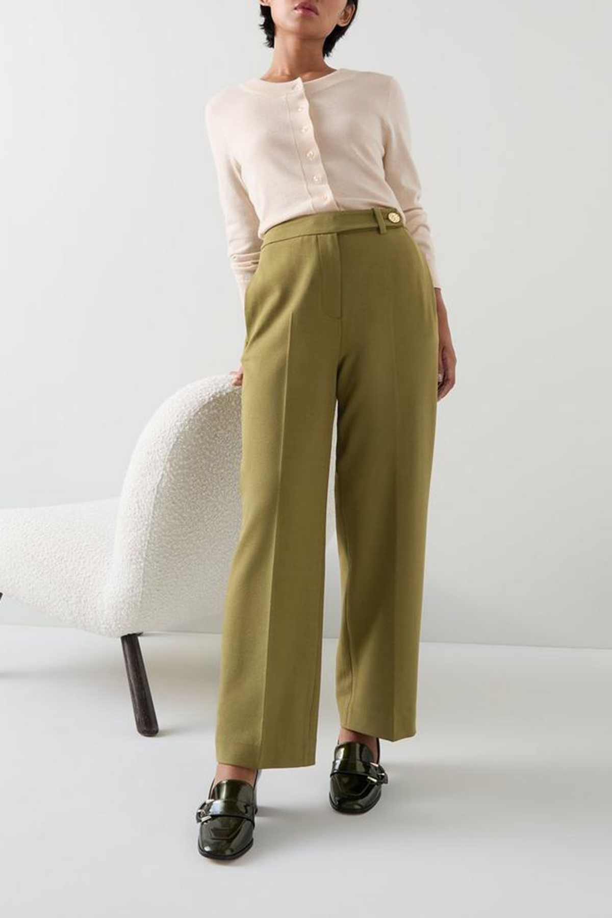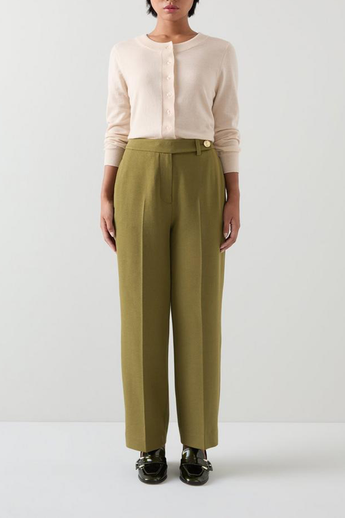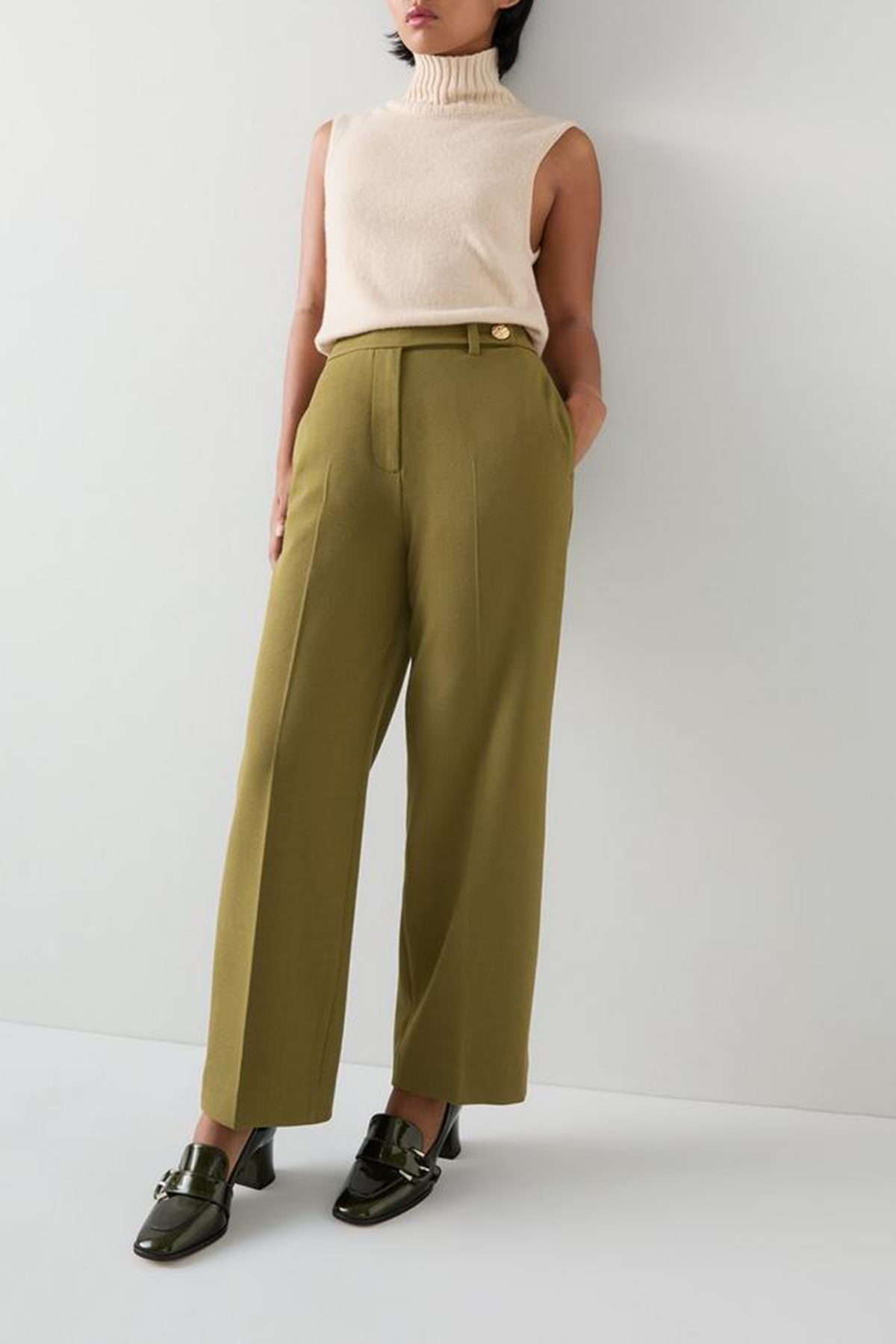 Embrace sophistication with our petite tailored crop wide trousers. In a rich olive hue and crafted from a luxurious blend, these trousers offer a timeless design that's perfect for workwear. Pair them effortlessly with a crisp white blouse or a sleek black blazer for a polished look.