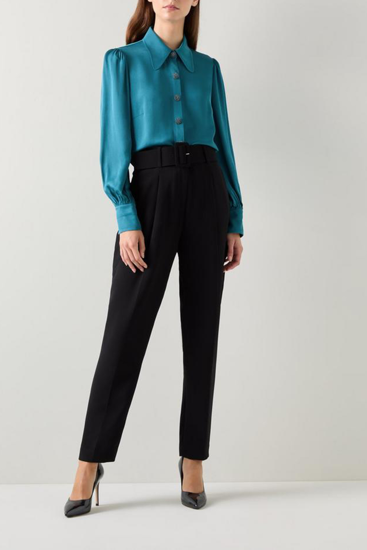 Effortlessly stylish, the viscose crepe shirt in green is perfect for any evening occasion. Featuring stunning jewel buttons and front poppers, this full length sleeve top exudes sophistication. Pair it with tailored trousers or a sleek pencil skirt for a timeless look.
